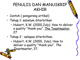 Bahan rujukan diketahui penulis hendaklah mengikut konvensi berikut lihat contoh senarai rujukan disertakan di muka surat berikutnya. Jerzy Dudek bermain 54 kali untuk Poland. Kecuali penulis yang betul2 bagus dan tinggi ilmunya contoh terbaik yang harus dan wajib saya sebutkan di sini.